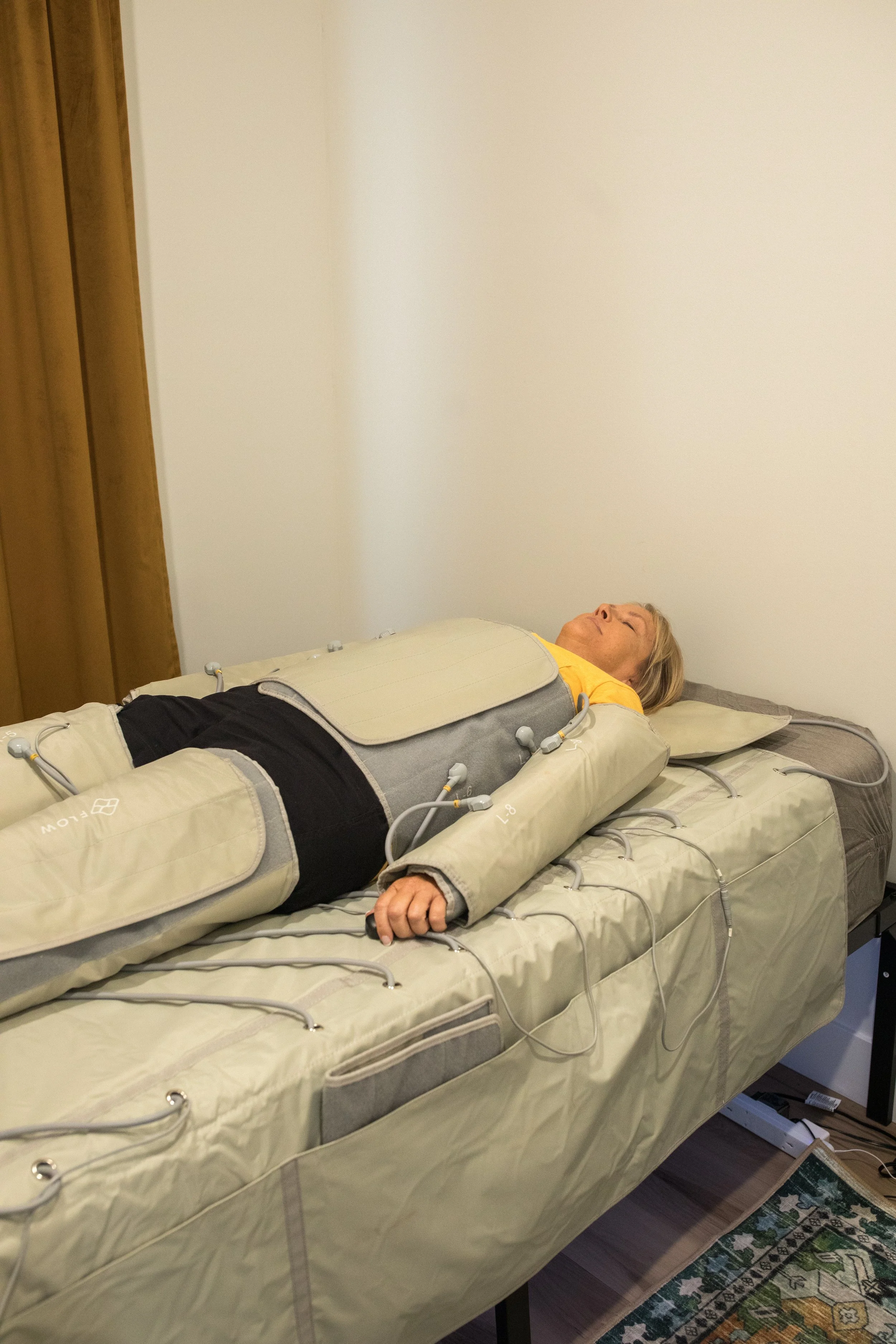 A cutting-edge and rejuvenating 30-minute session of gentle compression, PEMF pulses, and far infrared heat. This cutting-edge technology moves the lymphatic system and gently detoxes the body while promoting healing, releasing fascia, promoting lymphatic circulation, and helping to downregulate when living a fast-paced life. Flowpresso is an excellent therapy for people with high stress, anxiety, and depression. Helps force the body into rest & digest, and out of fight or flight.